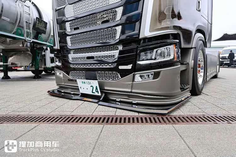 一个爆改的日本牌照斯堪尼亚,底盘真的是超级低,基本上没有离地间隙可言。