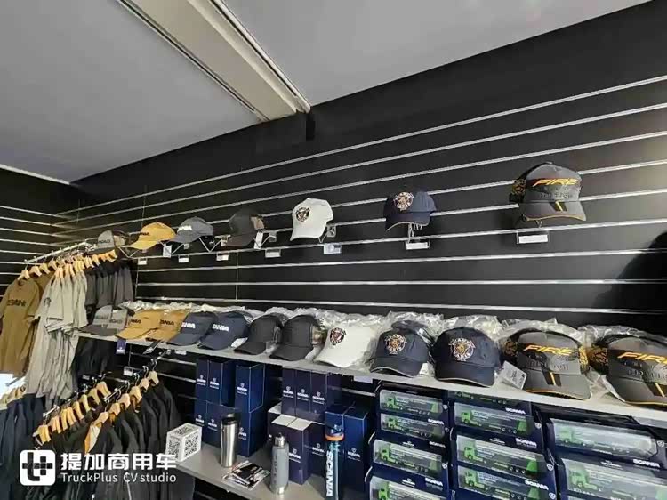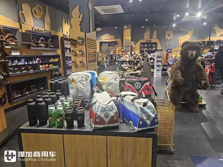 斯堪尼亚外展这有个SCANIA SHOP,斯堪尼亚商店,然后里面会卖一些帽子、衣服、车模、杯子、钥匙扣一类的物品。