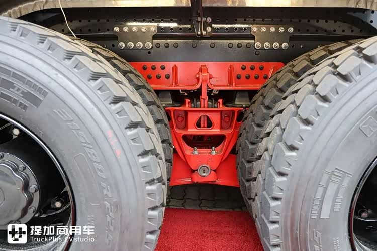而且像他们这边中卡的轮胎轮毂也都是小尺寸的,轮毂基本上都是17.5寸,轮胎用235/75R17.5或者225/75R17.5,扁平比都很低,在视觉上没比咱们这边用的7.00R16轮胎大多少。