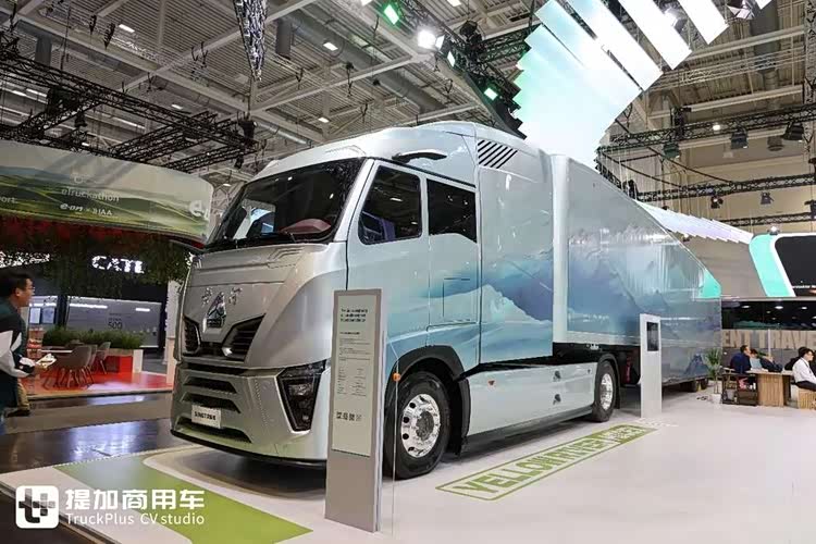 中国重汽、陕汽重卡和潍柴法士特汉德在一个展区,重汽展台的黄河绝对是吸睛的存在,劳斯同款倒开门,内部星空顶,超低的风阻系数,氢内燃的先进动力,老外直呼NB。
