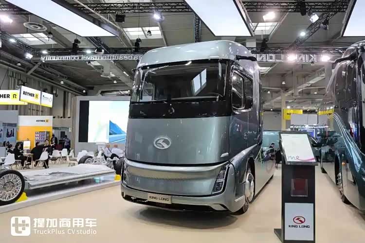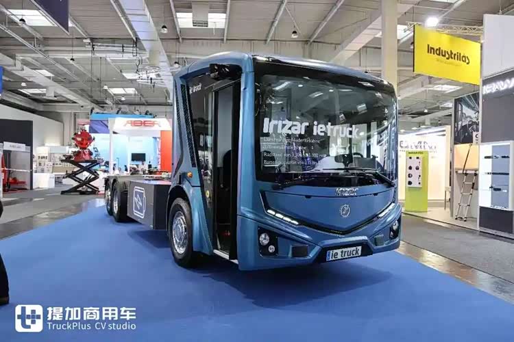 伊利萨尔的展台没有展出客车,他们展的是低入口电动卡车底盘,这个用的也是客车平台开发,前脸是伊利萨尔的家族化设计,与奔驰eECONIC定位类似。