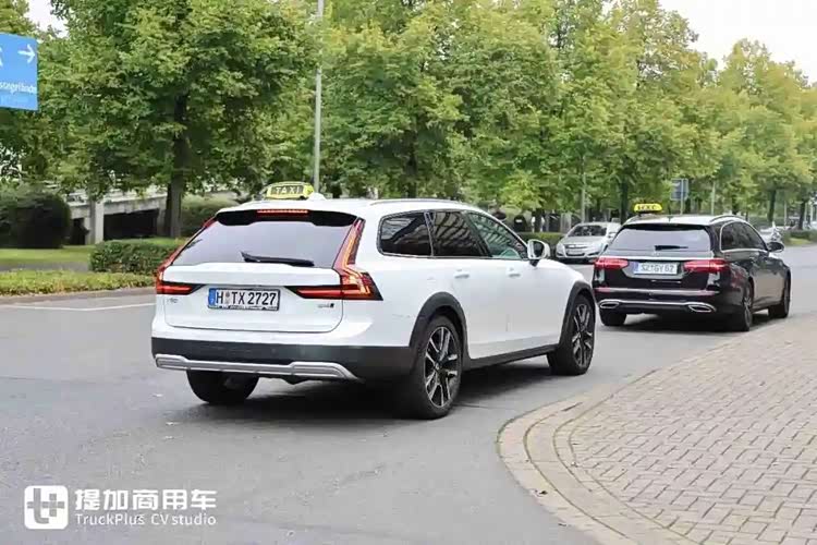 这边出租车大多数是奔驰旅行车,这在展馆附近碰巧看到一辆沃尔沃V90CC瓦罐出租车,还是新款的B4带48v轻混动力。