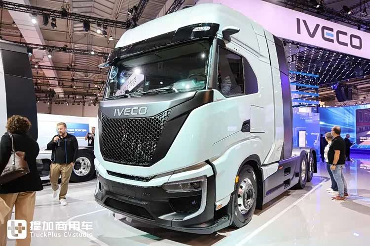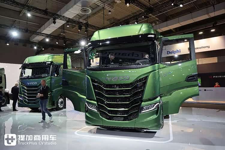 依维柯对新能源的敏锐度还是相当之高的,带了3个氢燃料的重卡,用的是科索氢内燃发动机,发动机烧氢再发电给电池,电池驱动车辆……这逻辑,这新能源+增程混动?