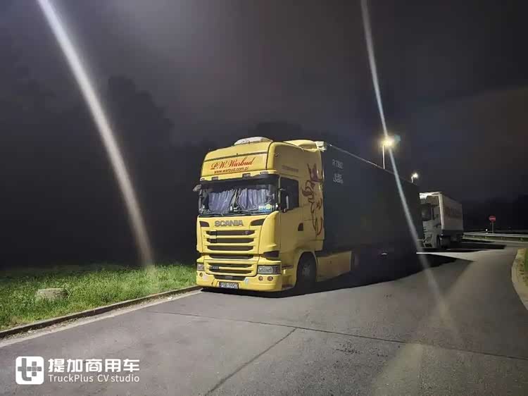 晚上回去又路过一次服务区,看到一辆全气囊悬挂的斯堪尼亚R系TOPLINE,这个大额头在国内见不到,在国外见一次感觉真的够震撼的,实车超级无敌帅!
