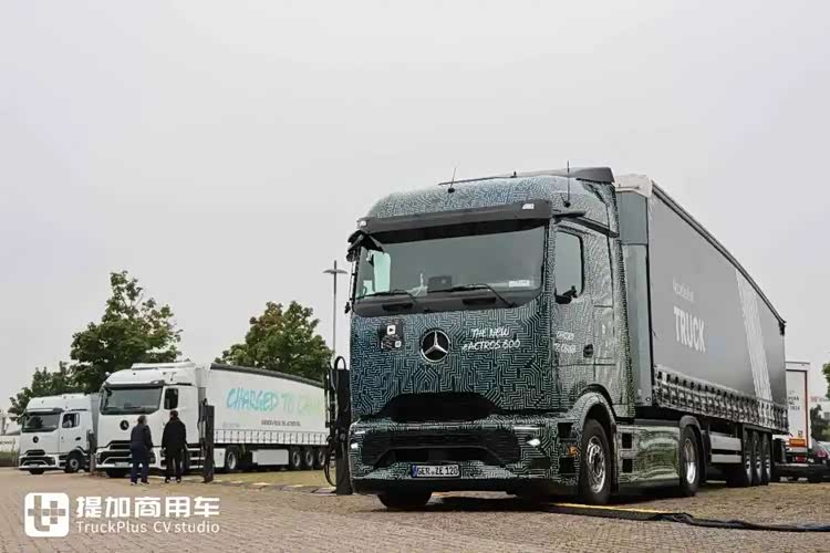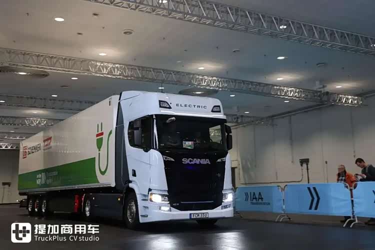 电动版的斯堪尼亚,型号是40R,车子还是中央电机的解决方案,728度电,40吨总重情况下续航532公里。像斯堪尼亚现在是自研三电,然后可配备兆瓦级快充,但是这样做成本也是最高的。