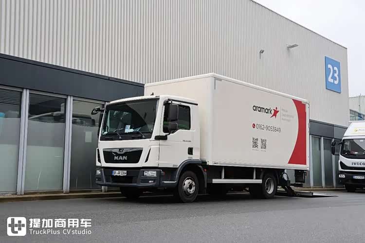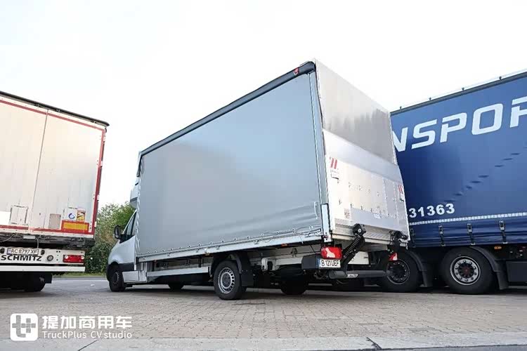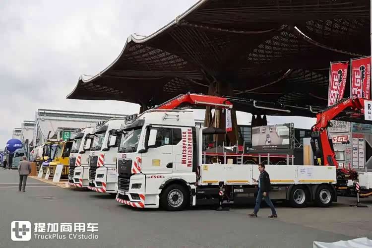 IAA的第一天还有很多展商在布展,进场运输展台物品的载货车也都挺有意思。看了看他们这边的载货车的车厢,基本上就是复合板或者侧帘,侧帘内部会有结构加强,后面基本上都带液压尾板方便卸货。