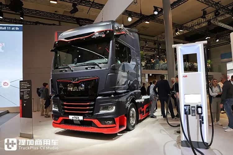 eTGX,曼恩首款纯电动长途重卡,底盘最多可以容纳6块电池,最大电量480度,最大续航高达600公里。在外观上采用的是运动风格配色,这个还是相当酷的。