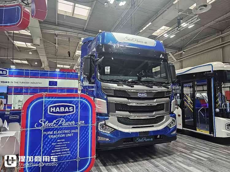 展馆里面还有速豹黑金刚,旁边蒙着布的是换标车型斯太尔eTopas,用的都是速豹全栈自研电驱桥,准900V高压平台,电池621度,不得不说中国重卡出海也挺强的。