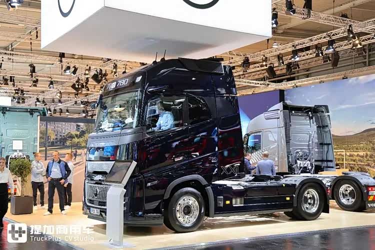 从第一个展馆出去之后,到第二个展馆,里面有沃尔沃、福特、达夫这三家车企,沃尔沃的展台毋庸置疑是最火爆的,FH Aero 780、VNL 860这种车基本上是排长队看的。