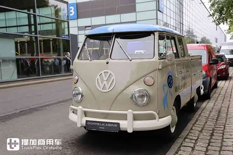 1966年的大众T1,这个车展牌上写的是DOPPELKABINE,不是普通的面包车,是个后面带斗的,成色嘎嘎好。
