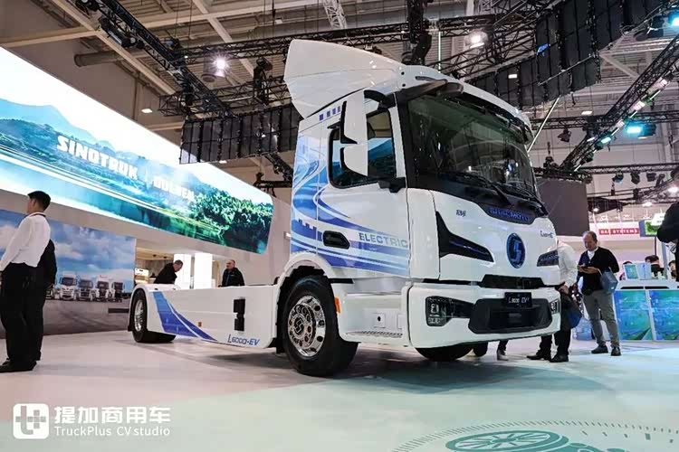 陕汽带来了一个低入口的L6000EV纯电重卡,这个车型也是很创新的,采用了全电架构,比如电动转向机、电驱桥等等,适合上装载货车或者环卫设备。