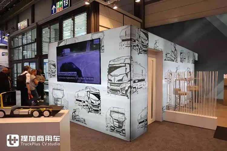 在展区里面意外的发现了一辆彼得比尔特,但是这可不是美国卡车的展区,这是德国大陆集团带来的智驾方案的展示,车子只是一个改装案例,目前这个智驾只支持沃尔沃和彼得比尔特。