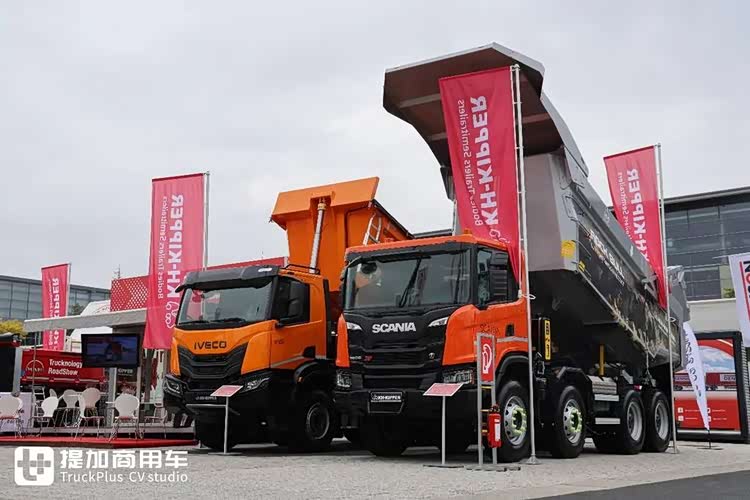 斯堪尼亚XT和依维柯X-WAY,这个应该是矿山装备上装的品牌展区。