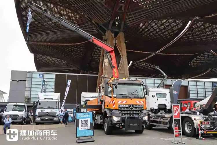 这一堆都是拖拽交换箱或者是特种车的展区,像VDL、BUCHER布赫这种都有参展。