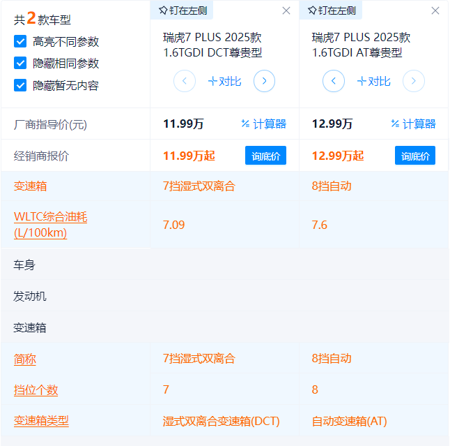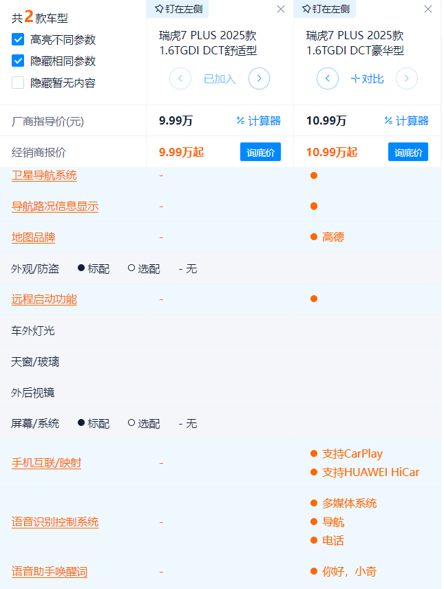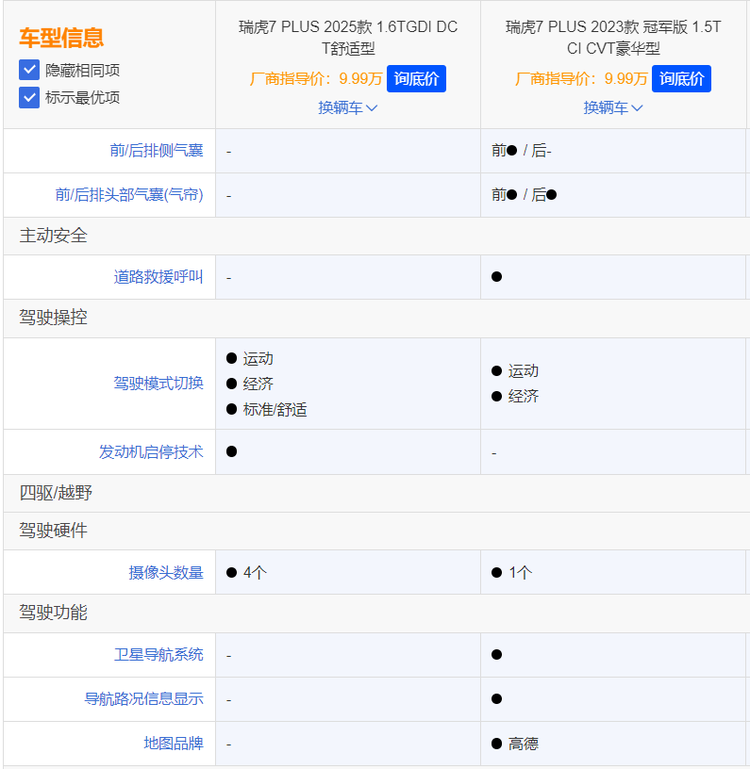 2025款瑞虎7PLUS 选谁更合适?