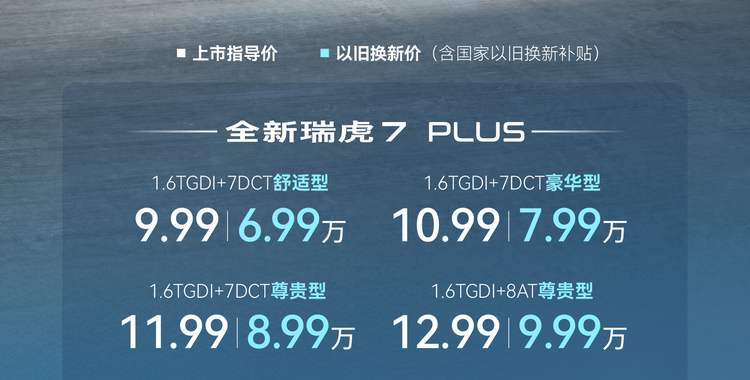 紧凑级SUV这个市场的竞争那叫一个激烈。11月1日,奇瑞旗下紧凑级SUV—— 瑞虎7 PLUS(参数|询价)正式上市。新车共4款车型,售价9.99万-12.99万元。值得一提的是,在包括国家以旧换新等一系列补贴之后,这款车的起售价格就来到了6.99万元。