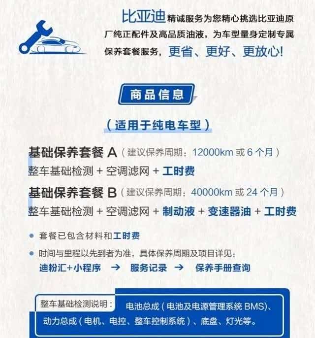 海鸥保养可以参考比亚迪其他纯电车,保养周期为六个月或者1.2万公里,整车基础检测,更换空调滤芯,一次花费200-300。