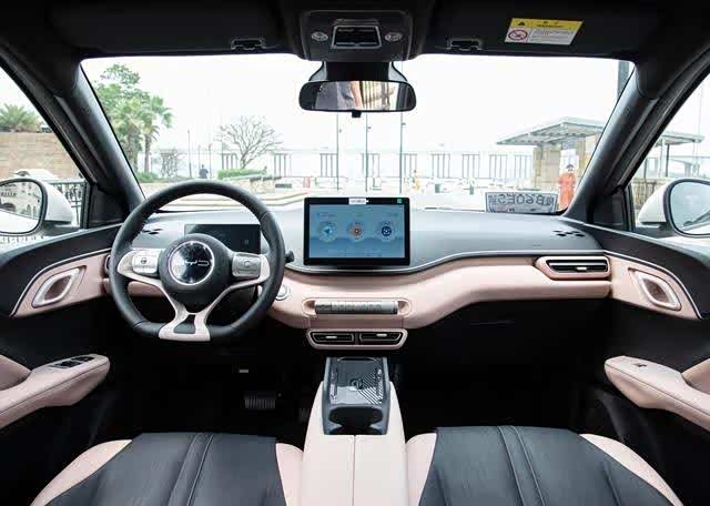 海鸥的内饰有一定的设计感,中控台犹如一个展翅高飞的海鸥,看着比较活泼。还配备旋转式车机大屏,全液晶仪表盘,多功能方向盘,搭配双拼色,有着越级的质感。