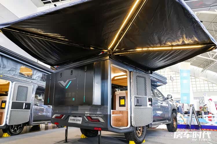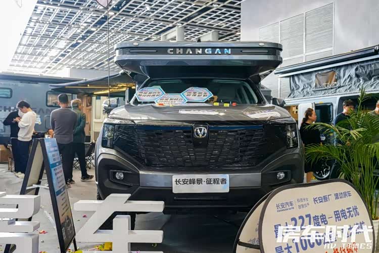 长安峰景原厂房车一直以来都算得上是行业里比较特殊的房车品牌,作为原厂房车成员,旗下产品线非常的集中,仅有皮卡房车一个品类,也因此其实长安峰景在皮卡房车产品的开发上一直都算得上是有所专精的,基于览拓者和 长安猎手(参数|询价)的车型也在2024年的前三个季度取得了不错的销量,在皮卡房车细分市场上算是排名非常靠前。本次南京房车展我们现场实拍了一款新能源增程皮卡房车——长安峰景·征程者原厂四驱房车。