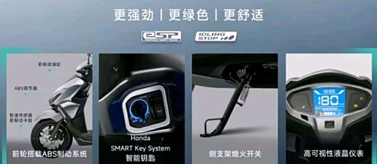 2024款五羊本田NPF125在配置方面也是诚意满满,标配了无钥匙启动、发动机启停、脉冲点火系统、Type-C充电口、侧支架熄火功能、前后LED灯光、卤素转向灯、双拉线油门、前碟后鼓刹系统等丰富的配置选项。液晶仪表在功能上就很欠缺了,只能提供了时速、里程、剩余油量等车辆信息,并有像电动车那样有手机互联、智慧防盗、远程控制等。2024款NPF125 CBS·SMK版与2024款NPF125 ABS·SMK版在售价上相差1000元,但在配置上的区别就在CBS刹车联动(2024款NPF125 CBS·SMK版)以及前轮日立ABS防抱死系统(2024款NPF125 ABS·SMK版),这样区分满足了骑行者的多样化需求。