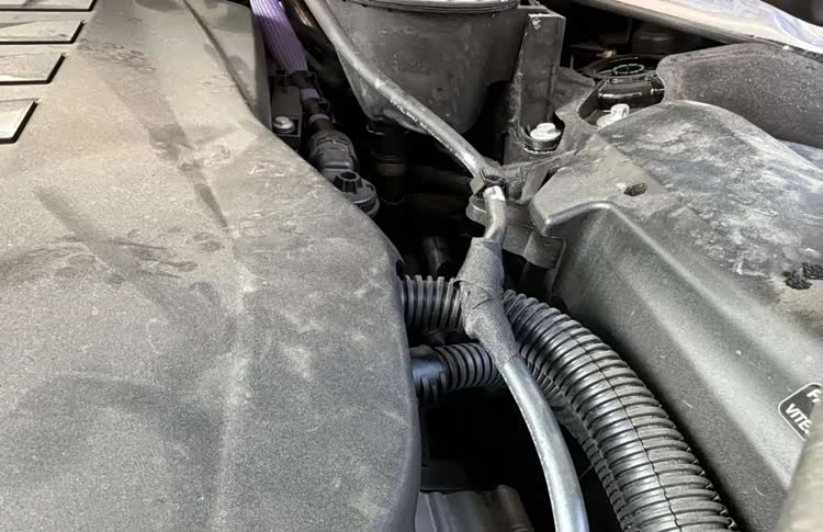 同时车辆也出现了其他一些不大不小的问题:第一个就是上期提到的发动机仓线束干涉磨损问题,现在被我包成这样,里面一层耐热乳胶衬套,外面一层耐热胶带。管线间隙太小,不方便操作,所以成品巨丑,实用就行,手残党就不敢再奢求美观了。顺带提一句,天气转凉,小动物喜欢钻发动机舱,实在是找不到特别好的解决办法,到处都是猫爪印。希望它们不会对这些“管管线线”的感兴趣,维修价格都很贵。