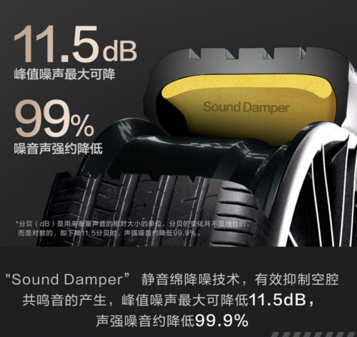 你以为这就完了?还远远不止呢,胜利EV系列 还有加入Sound Damper 静音棉的型号,这种吸音材料能够有效阻隔路面传来的胎噪。Sound Damper 的特性是能吸收多频段噪音,特别是低频段噪音,有效抑制轮胎内部空腔共鸣音的产生,180-250HZ频率下,降噪效果显著;峰值噪声最大可降低11.5dB。静音绵为多孔隙结构,声波进入后被吸收并与材料内表面产生摩擦,动能转换为热能耗散显著降低行驶过程中乘客舱内的噪音。静音棉设计使得胜利 EV 系列不仅在高速行驶中表现出色,在低速或城区驾驶中也能保持极低噪音水平。