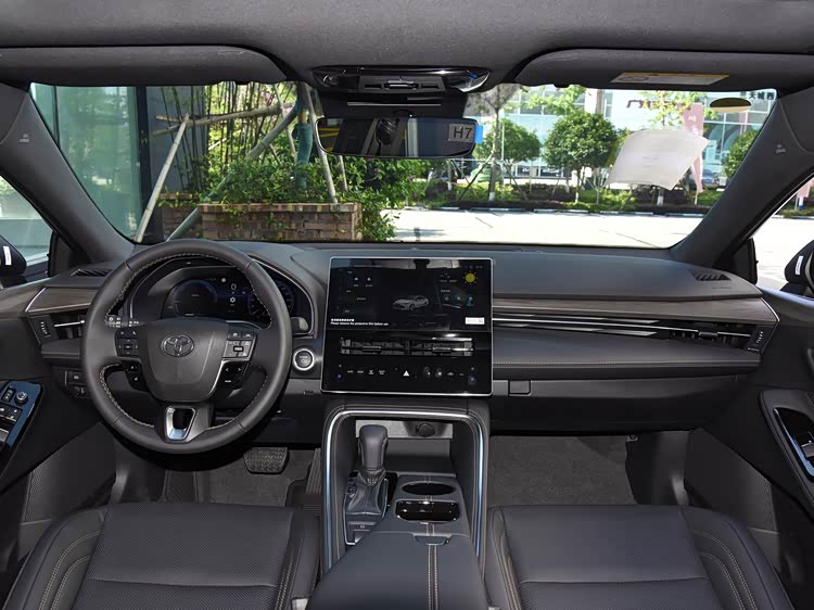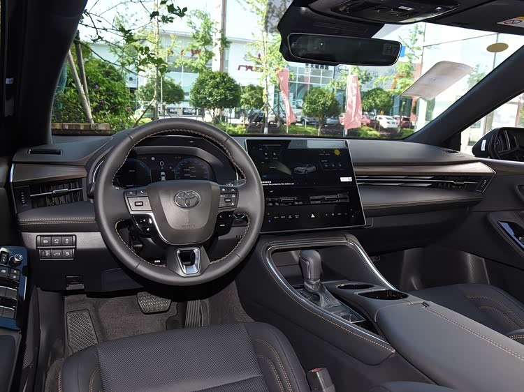进入车内,全新亚洲龙全系标配木纹饰板,高配车型更是采用了雷克萨斯同级的Belleza材质包括车顶,12.3英寸的悬浮式中控大屏与12.3英寸的全液晶仪表盘的运用显得更加年轻与科技。
