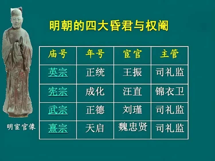 明朝中后期经常爆发农民起义,而且还有王振、汪直、刘瑾、魏忠贤四大宦官专权,搞得国家民不聊生,怨声载道;