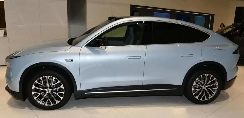 从车身侧面看,蔚来EC6竟然是一款溜背式轿跑SUV,它的车顶线条从A柱就开始逐渐向下滑,看起来运动气息较为明显。不过蔚来EC6并没有采用贯穿式腰线装饰,甚至它的车身线条比较少,展现给消费者的样子有一种饱满圆润的感觉。不过这款车的轮毂采用个性的设计,既能让消费者感受到潮流时尚的气息,也能让消费者感受到运动气息。