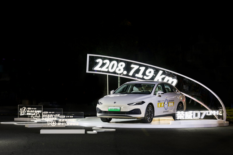 荣威D7 DMH世界冠军版以2208.719km续航与2.49L/100KM平均油耗打破吉尼斯世界纪录,获“全球最省混动B级车”称号。长轴距媲美B级车,新增晨曦金外饰与18寸轮毂,配备云宿智能座舱与双层隔音玻璃,静谧舒适。