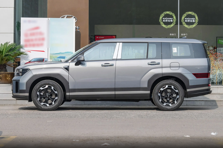 车侧在我看来则是第五代胜达的一大看点,A/B/C/D柱来营造出了悬浮式车顶的既视感,加上大尺寸双色轮圈让其拥有豪华品牌路虎卫士的美感,向外突出的前后轮眉以及侧裙和行李架则提升了SUV车型与生俱来的野性气息。另外,简洁的车尾主要以平直的线条为主,尤其从车尾45°位置看过去,这在越野SUV上比较常见了,但是在城市SUV车型上却不多见,后尾灯的位置设计的比较低,点亮时同样为H的造型并通过黑色的饰板连接在一起,进一步拉宽横向的视觉效果。