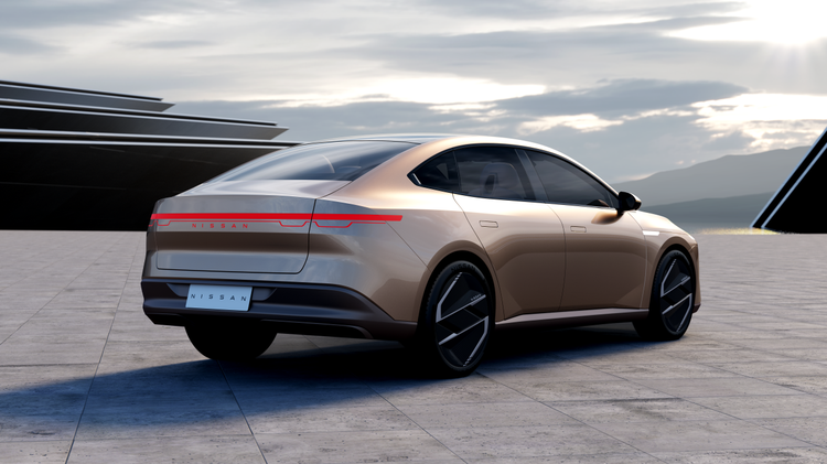 车尾部分的设计十分简洁,贯穿式尾灯是镶嵌在内的,从表面看,并没有凸起,尾灯下方的NISSAN品牌标识也能随着尾灯一同点亮,显得很有技术含量。新车的后保险杠通过一块黑色饰板点缀,显得比较单调。