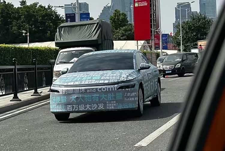 新车的路试谍照也曝光了,通过路试谍照来看,基本上完整的还原了官图的设计,而且在它的车身上还有很多文字,像什么“百万级大沙发”、“这才叫真·无框车门”、“纯电家轿不止于冰箱彩电大沙发”、“买沙发送车”等。通过这些信息可以判断出,该车是一辆纯电汽车,并会配备日产的零重力航空座椅,并且在车机系统方面,也将和国产品牌进行合作。