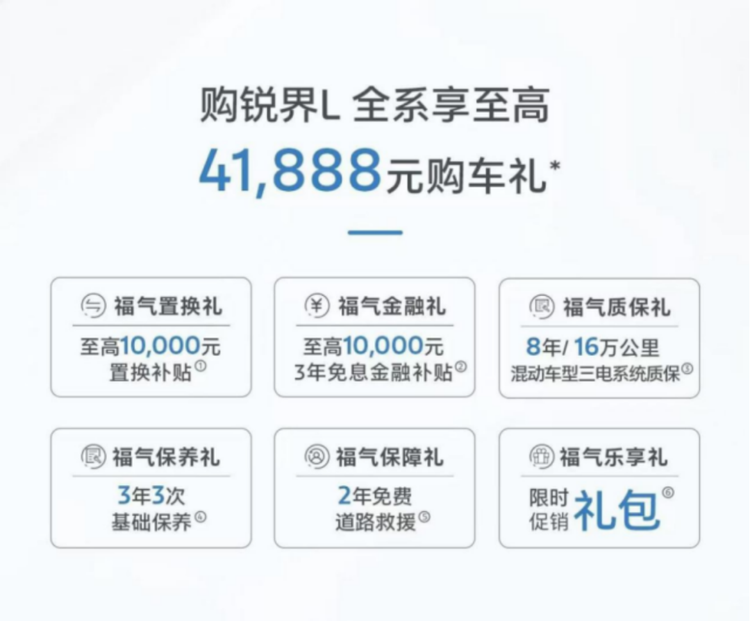 2025款锐界L在上市同步推出全系至高享41,888元购车礼,包括: