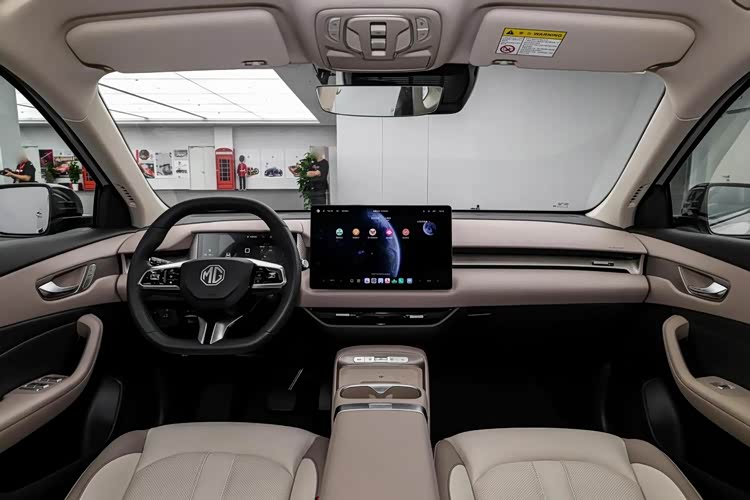 内饰层面,MG ES5的设计比较常规,两块大屏属于时下的主流设计,能提升内部的科技感。同时,MG ES5采用了怀挡设计,也为前排留出了较多的储物空间。另外,MG ES5的方向盘采用了扁平化布局,视觉效果也蛮个性。
