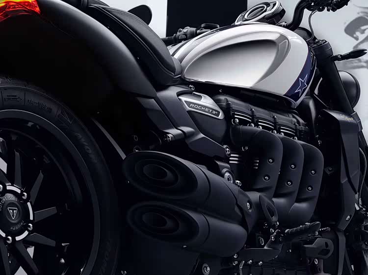 规格方面,这款限量版Rocket 3与标准版Rocket 3 Storm系列一致,搭载2,458cc三缸引擎,最大马力180匹(R型)及182匹(GT型),能在7000 rpm爆发,最大扭力则达225 Nm,这让它成为目前道路上最凶猛的摩托车之一。 前悬挂采用 Showa 47mm 倒立式前叉,配备 Brembo M4.32 制动系统,这么一台“地表巨兽”依旧稳定舒适,无论直线加速还是弯道,都足以让人肾上腺素飙升。
