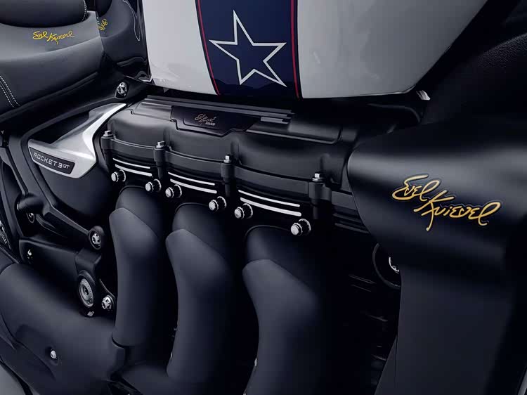 Evel Knievel 是 1960 年代摩托车界的风云人物,以他在 1967 年 Caesars Palace 喷泉上的惊险一跳一炮而红(并直接送进医院),成为全美家喻户晓的摩托车特技之王。 这一切都源自 Triumph。 如今,Evel 那狂放不羁的灵魂化身在这款限量 Rocket 3 中,重现他当年挑战极限的魄力。