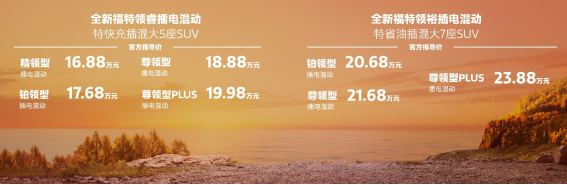 11月15日开幕的广州国际车展,无疑是迄今为止福特汽车新能源车型最多最全的一次。除了“大马力E混动”家族里已经上市的福特蒙迪欧运动版、福特锐界L和福特蒙迪欧1.5T混动版,全新福特领睿/领裕插电混动SUV车型也正式发布上市价格,前者售价16.88万-19.98万元,后者售价20.68万-23.88万元。