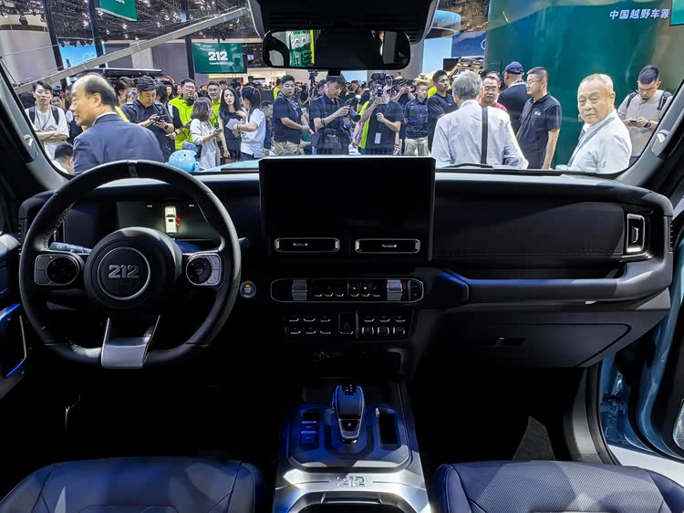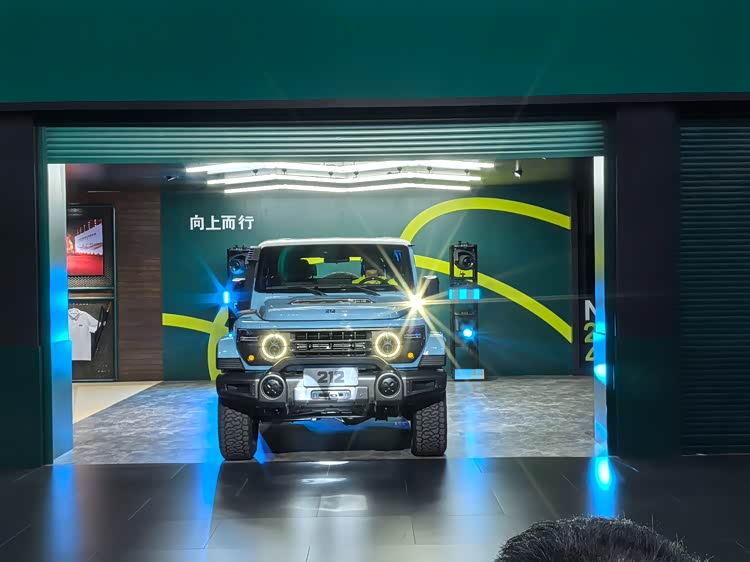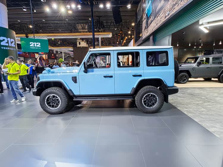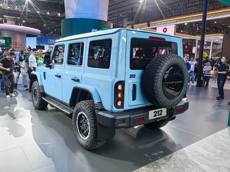 212整体给人的观感更加魁梧,独具特色的虎式设计前脸,加宽中网搭配犀利的LED大灯组,使得整车辨识度极高,同时散发出强烈的越野气息。前机盖的设计强调了力量与动感,呈现出一种蓄势待发的姿态,加宽中网使得辨识度进一步提升,同时增加了进气通道面积,提高燃烧效率及动力输出。搭配自带的改装的前杠不仅提升了越野气质,更提升了接近角,提升了极限越野工况下的车辆通过能力。