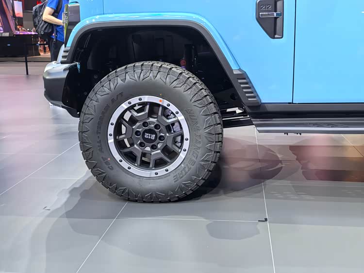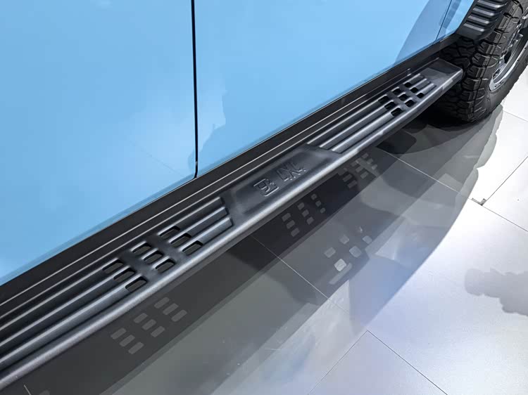 车身侧面,T01长风采用了一体式宽体式轮眉设计,不仅提升了颜值,更能够有效保护车身免受撞击。搭配加宽的侧踏板,为上下车提供了更稳定的支撑,同时也提升了整体视觉效果和美观度。车轮部分,专属定制的铝合金轮毂搭配285/70R17越野轮胎,展现出越野车硬核美学的一面,与整车的越野气质相得益彰。
