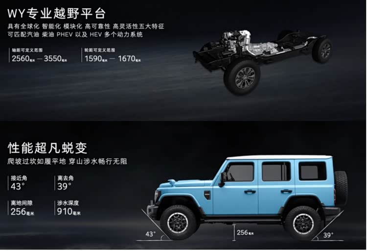 为满足更为复杂的越野需求,T01长风在重要越野性能与车辆配置方面进行了统一的提升,使T01长风成为真正的硬派越野车的实力派。越野参数傲视群雄,其最大涉水深度提升至910mm,可安全通过较深水域,256mm离地间隙能跨越各种障碍,43°接近角、39°离去角方便爬坡和下坡,减少车辆底盘和前后保险杠的碰撞风险。
