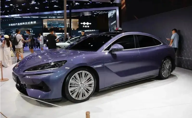 从车辆的侧视角度来看,腾势Z9展示了一种富有起伏的腰线设计,尤其是腰线部分显得格外饱满,两侧更是格外引人注目。前面的保险杠部分的设计显得相当夸张。这款汽车的门板采用了内凹而尖锐的设计,前部还特别设计了一个独特的空气导流槽,给人一种非常强烈的视觉冲击。