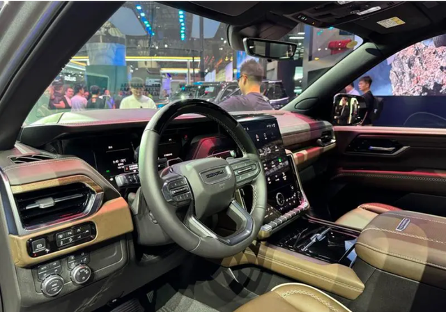 2025款YUKON育空在内部装修方面展示了一种创新的设计思路。中控台的横向展开与16.8英寸的超大纵置中控屏相得益彰,完美地结合了豪华的空间感和现代科技的氛围。仪表板的整体设计既丰满又圆润,具有很高的质感,线条流畅自然,给人一种很好的视觉冲击。中控台上的装饰板选用了哑光实木作为主要材料,并采用了先进的激光雕刻技术,以展示北美最高山峰“德纳利峰”的等高线图。