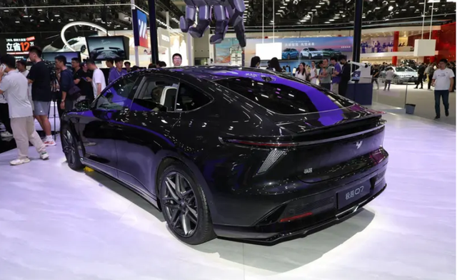 在这款新车的尾部设计里,它搭载了一个鸭尾式的迷你后扰流板,并采用了连续LED灯组技术。尾灯的两侧内部采纳了垂直排列的设计,一旦它们被点亮,识别起来会变得非常简单。车辆的尾部中心区域采用了大面积的镂空设计,使其整体呈现出一种运动型轿车的风格,同时也散发出一种科技和时尚的氛围。这款新车的尾部设计也展示了卓越的设计理念,与其圆润的车身设计相融合,呈现出非常出色的整体视觉体验。