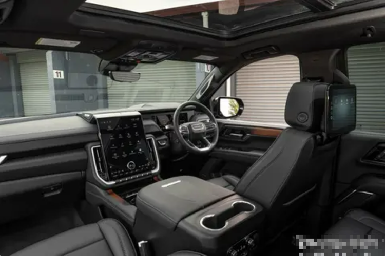 2025版的澳大利亚GMC YUKON育空标准配置涵盖了方向盘加热功能、前排座椅的加热和通风系统、第二排座椅的加热功能、11英寸的液晶仪表盘、15英寸的抬头显示、16.8英寸的中控屏、12.6英寸的后排娱乐屏、14扬声器的BOSE音响系统、无线手机的互联功能以及360度的全景影像等。此外,这款车的标准配置包括8个座椅,并且具有3500公斤的拖动能力。