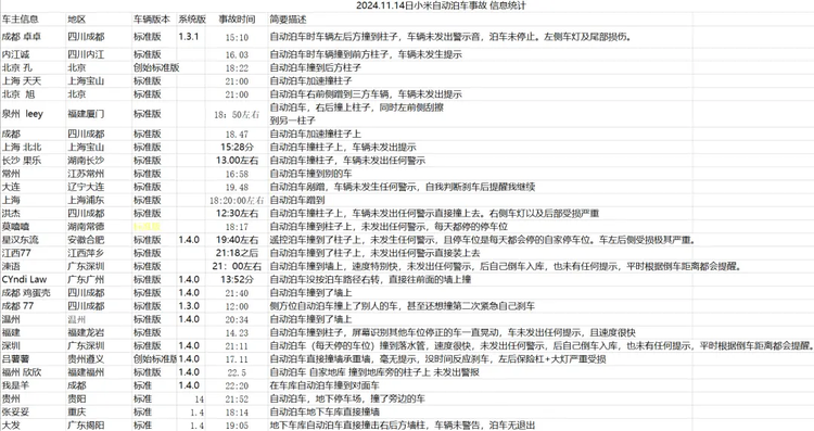 10月30日,小米汽车更新1.4.0新版本,自动泊车功能得到升级,很可能是这次升级带来的问题。