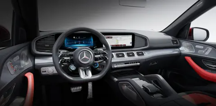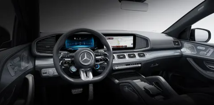 在内饰设计上,2025款的AMG GLE SUV和轿跑SUV都继续使用了“双翼式”AMG多功能方向盘。中控面板等细节部分采用了碳纤维装饰。12.3英寸的全液晶仪表和12.3英寸的中控屏都采用了双联屏设计。此外,标配还包括MBUX智能人机交互系统、实景穿越导航、环境氛围照明系统和可加热前排座椅等功能。