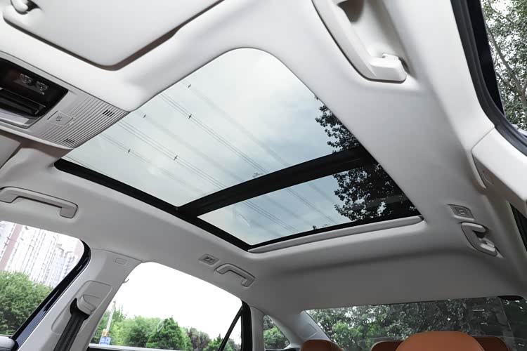 新车还配备了前半段可开启的全景天窗,天窗带有遮阳板。现在很多新能源汽车只提供全景天幕,不但无法开启,还没有遮阳板,炎炎夏日,阳光照进车内,车内的温度会很高,其实配备一块电动遮阳板的成本也高不了哪里去,不明白它们为什么不提供。