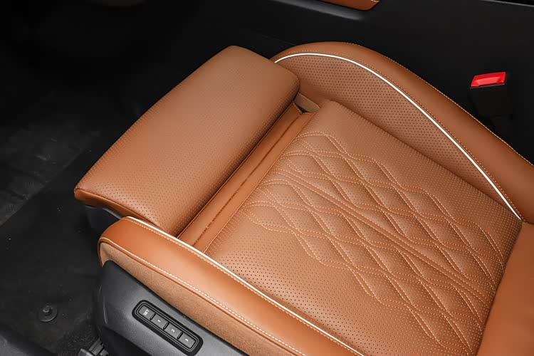 为了提升新车的乘坐舒适度,前排主/副驾座椅都配备了腿托,对大腿的支撑更加到位。顶配车型的前后排座椅都支持加热/通风/按摩功能,第二排座椅还支持靠背调节。空间方面,坐在后排座椅上,可以轻松翘起二郎腿,而且座椅的乘坐质感很舒适,和身体很贴合,乘坐十分放松。新车的后排腿部空间十分宽敞,家用商用都能满足。