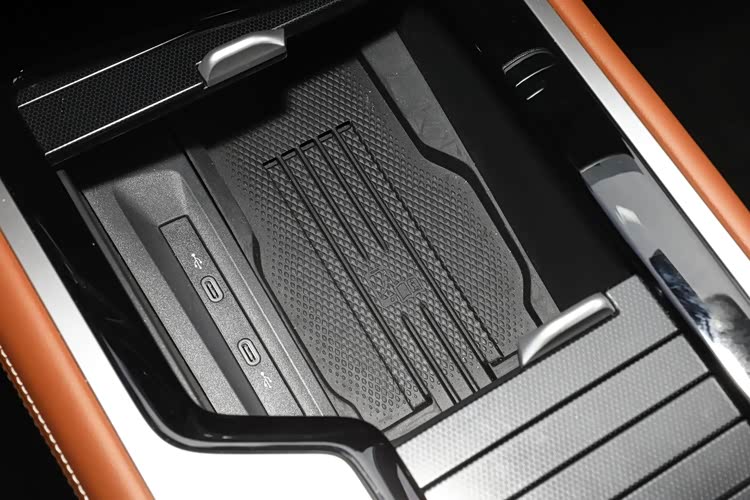 新车配备了电子怀挡,不会侵占前排地台的空间,因此,前排地台的储物空间还是很充足的,还配备了手机无线充电面板以及两个Type-C充电接口。另外,新车的顶配车型配备了14喇叭的哈曼卡顿音响系统,音响效果十分震撼,其余车型提供7/9喇叭,次顶配车型可选装14喇叭的哈曼卡顿音响系统。